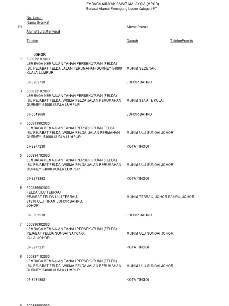 Nama Alamat Estet Mengikut Negeri Pdf